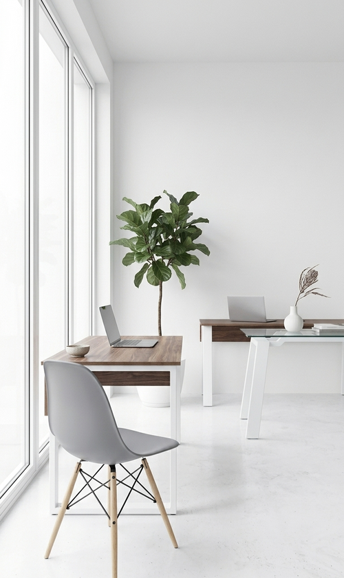 Una variedad de escritorios para oficina y mesas, con la que también...