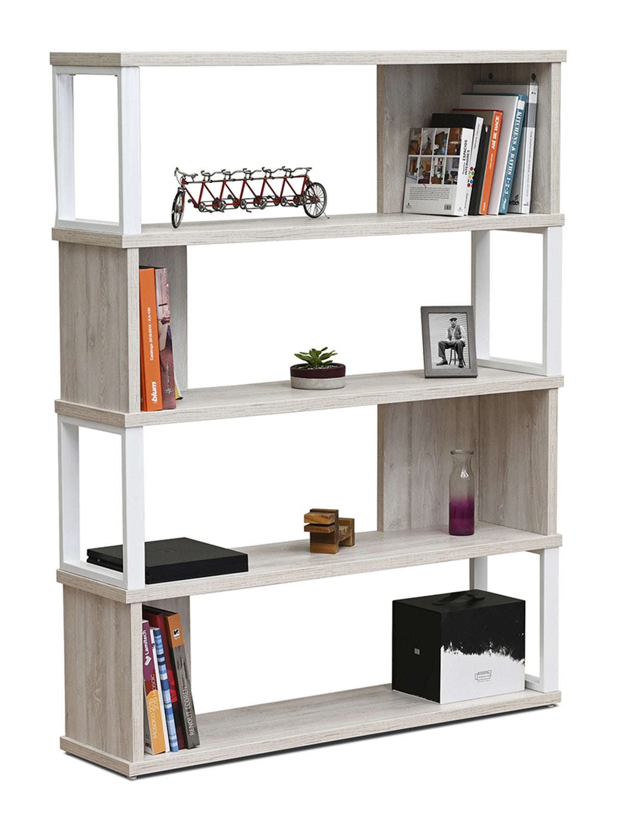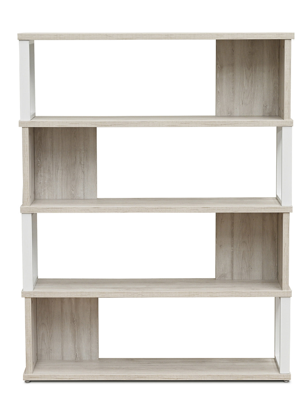 Este librero moderno es la solución de almacenamiento perfecta para hogares y oficinas. Con cinco niveles espaciosos, puedes usarlo para dividir espacios, acomodar libros, adornos, archivos y más. Hecho de laminado resistente con textura de madera y una estructura metálica. Viene en un elegante acabado blanco cremoso que se adapta a cualquier estilo de decoración.